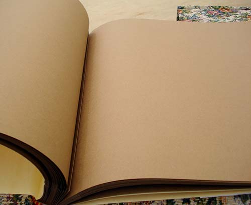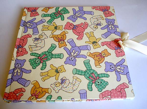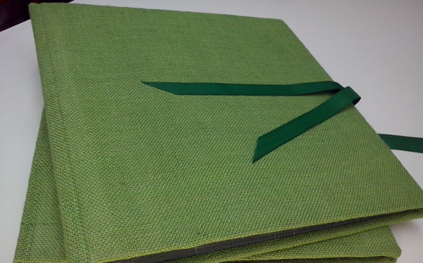 Cosidos completamente a mano con hojas en cartulina española lisa o gofrada y papel vegetal o de arroz entre cada hoja. Tapas forradas en tela: brocato, algodón, crea cruda. Capacidad para 80 a 120 fotos de 13x 18cms. Medidas: 34x 30 cms. Precio: $54.990.